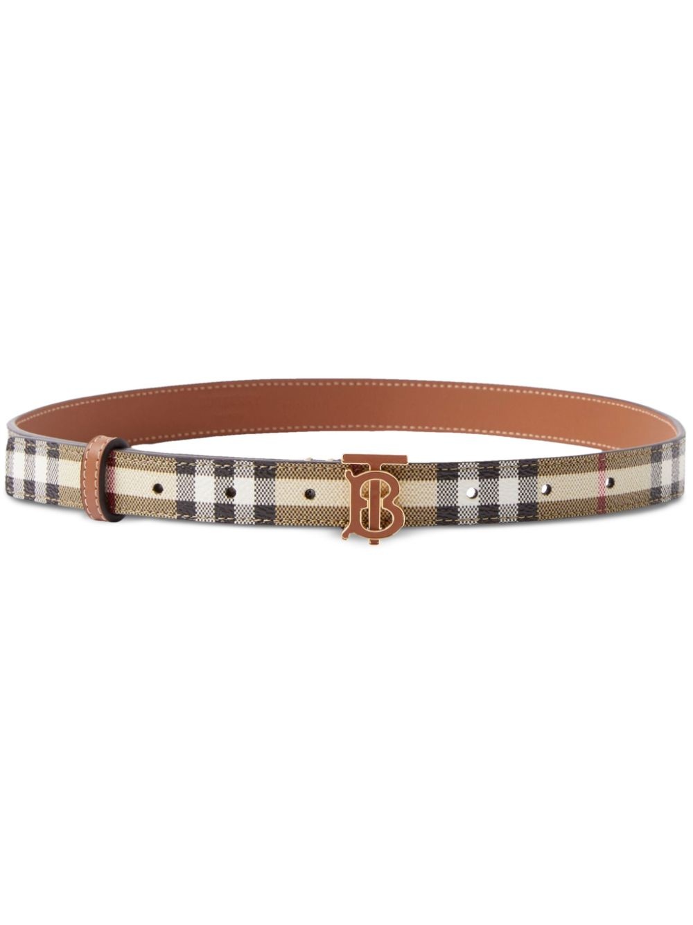 TB monogram-plaque checked belt Highlights - Archive beige/multicolour - Leather - Signature tb monogram plaque - Check pattern - Buckle fastening - Punched holes - Adjustable fit Made in Italy Composition Polyurethane 71%, Polyester 16%, Cotton 12%, Acrylic 1%