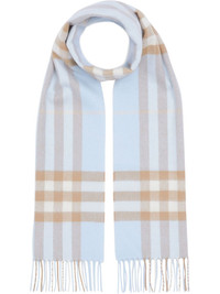 The Classic Check Cashmere Scarf British powerhouse Burberry's cashmere scarf is made at a 200-year-old mill in the Scottish countryside. Using 30 different steps, it is woven from cashmere on traditional looms, then washed in local spring water and carefully brushed with teasels for a super-soft finish. Made in United Kingdom Composition Cashmere 100% SIZE & FIT Measurement LENGTH 66.14 in(168 cm) WIDTH 11.81 in(30 cm) Washing instructions Dry Clean Only