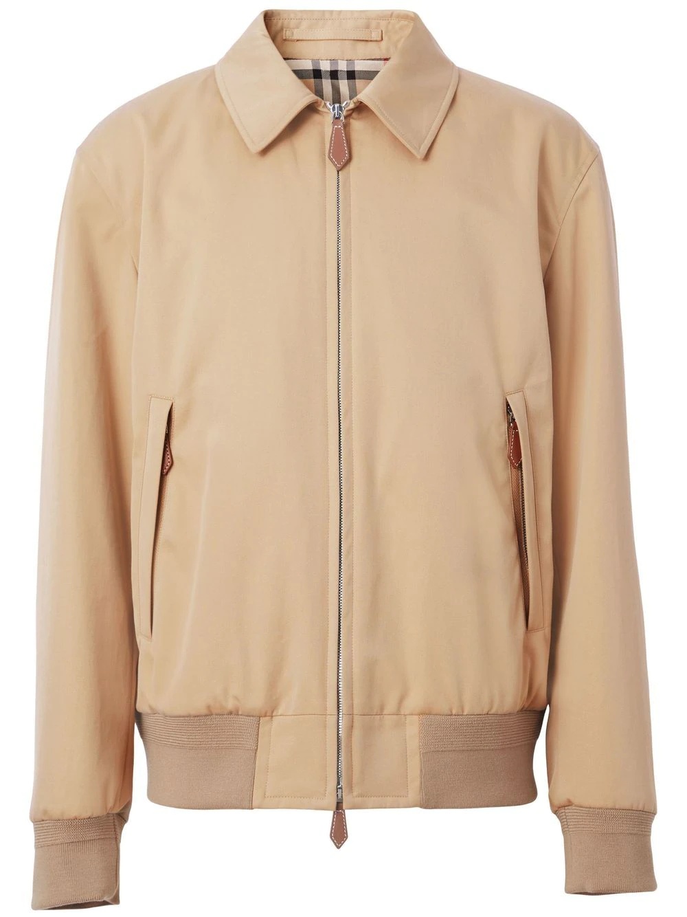 The Heritage Harrington jacket Crafted from cotton, this Burberry Harrington jacket is presented in a tonal honey hue. This minimalist finish creates a timeless aesthetic for the piece. Highlights - Honey - Cotton - Classic collar - Front zip fastening - Long sleeves - Two side zip-fastening pockets Made in United Kingdom Composition Cotton 100%