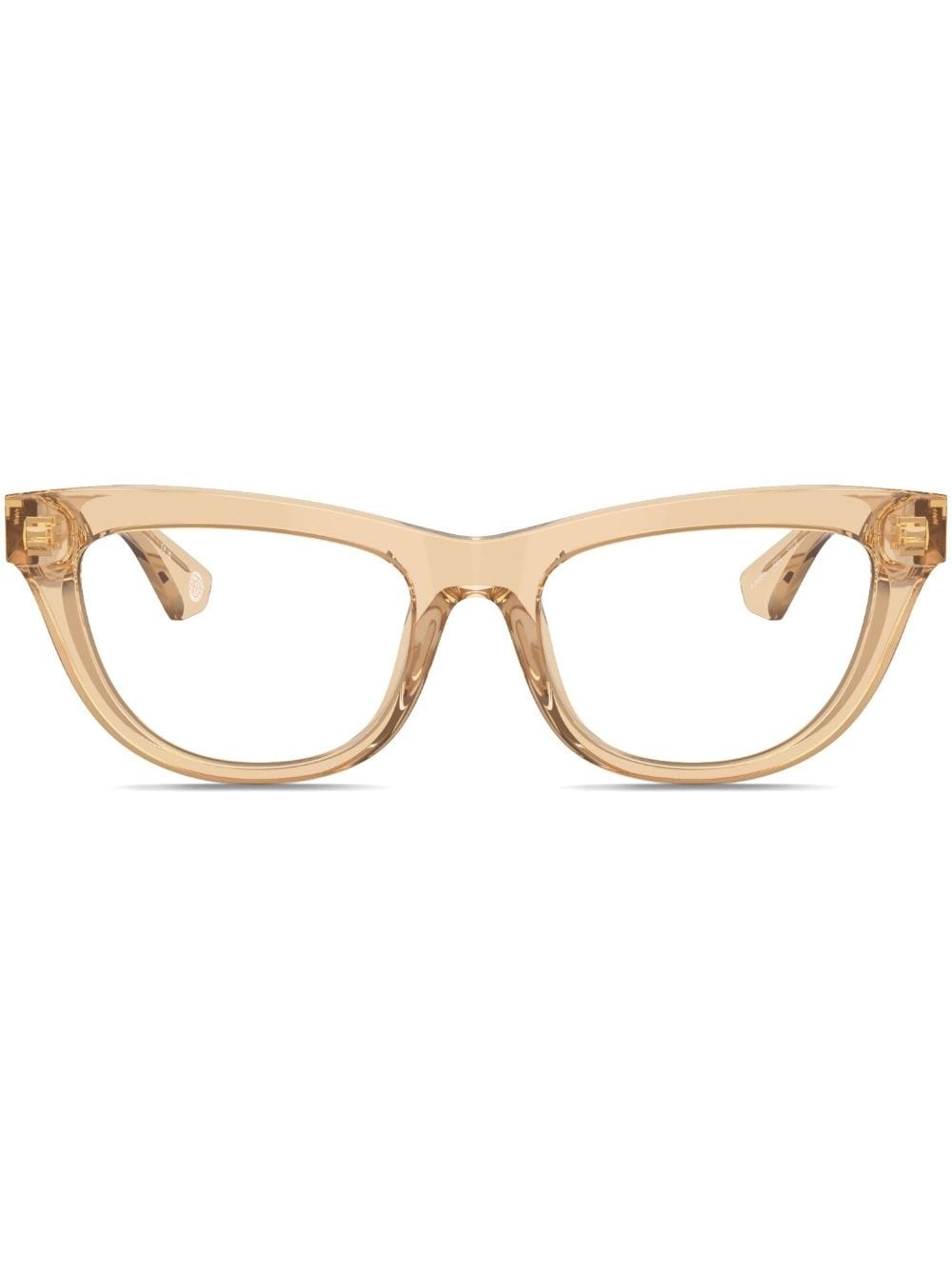 transparent-design cat-eye glasses Highlights - Beige - Acetate - Cat-eye frame - Clear lenses - Transparent design - Gold-tone logo plaque - Straight arms - Curved tips - These glasses come with a protective case. - All glasses from farfetch are sold as non-prescription frames. Made in United States Composition Acetate 100% SIZE & FIT Measurement Arm Length 5.51 in(14 cm) Bridge Width 0.7 in(1.8 cm) Lens Diameter 2.04 in(5.2 cm)