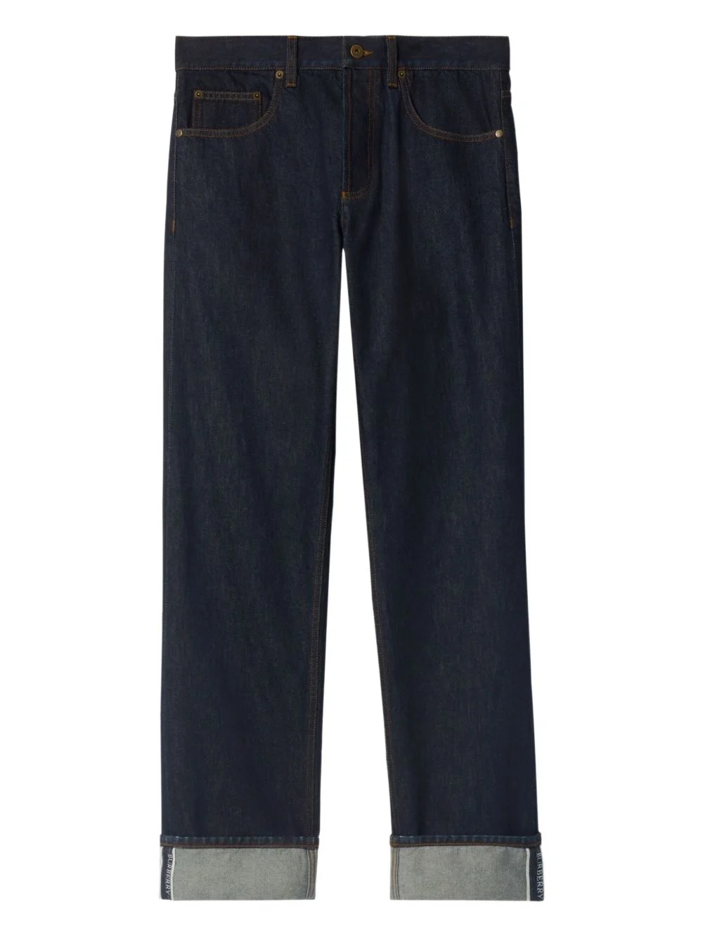 turn-up straight-leg jeans Highlights - Dark indigo blue - Five-pocket style - Button closure - Logo patch - Turn-up hem Made in Italy Composition Cotton 100% Washing instructions Read Manufacturer Guidelines