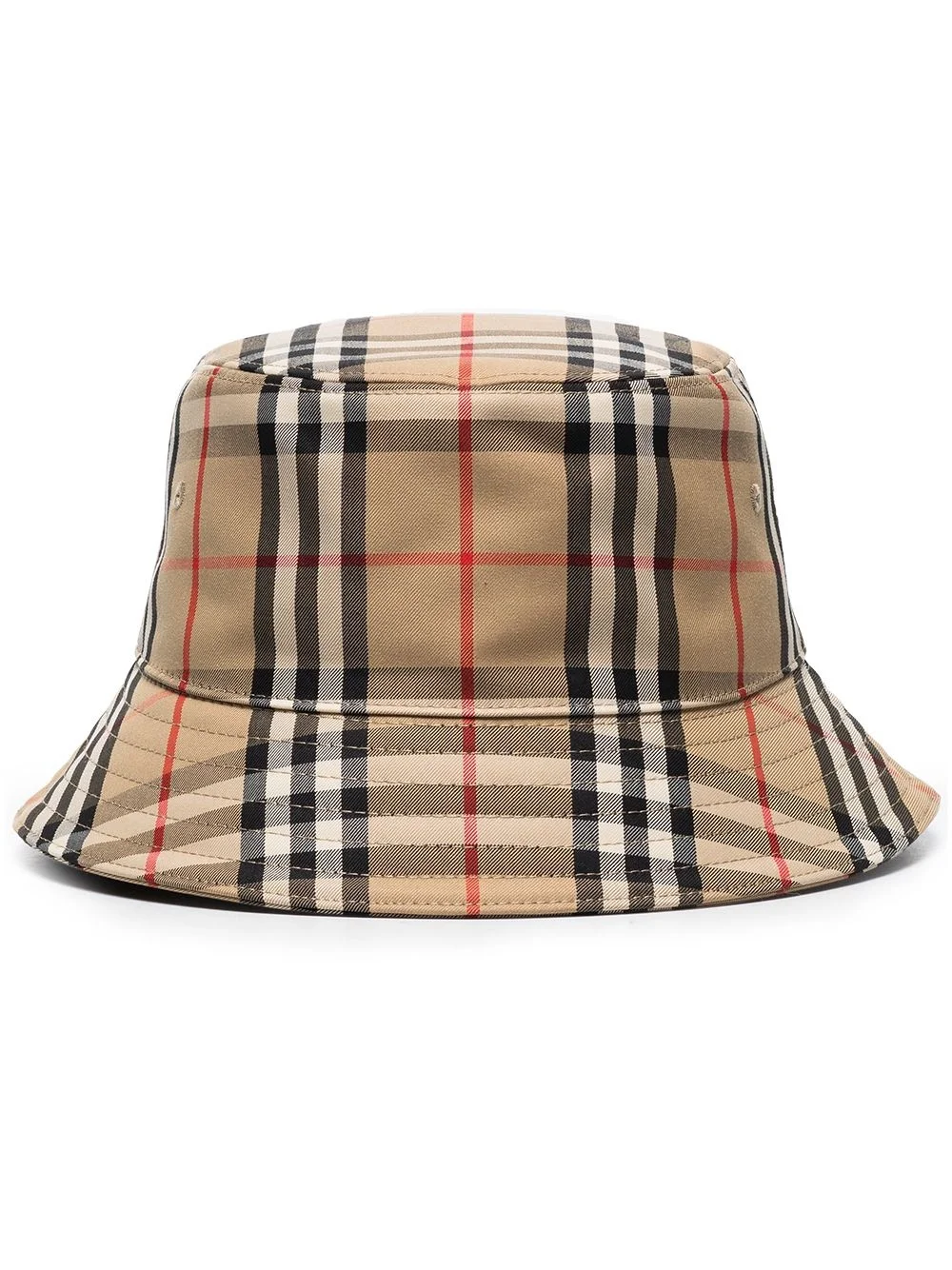 Vintage Check bucket hat Few things are more iconic than Burberry's Vintage Check print. So go on, make a statement wherever you choose to wear it. Highlights - This brown burberry vintage check bucket hat is crafted in italy and features all-over signature archival patterning, tonal stitching and a floppy brim. constantly - Checking - yourself out in the mirror is a given with this burberry hat. Made in Italy Composition Outer: Cotton 56%, Polyester 44% Lining: Cotton 100% SIZE & FIT Model measurements Height 6 ft 2 in(1.89 m) Bust/Chest 36.22 in(92 cm) Hips 35.82 in(91 cm) Waist 28.74 in(73 cm) Measurement BRIM 2.16 in(5.5 cm) CIRCUMFERENCE 22.83 in(58 cm)
