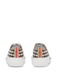 Vintage check cotton sneakers First introduced in the 1920s and later popularised in the '60s, Burberry's house check remains an iconic brand code, evolving with the brand each season. Crafted with a cotton canvas upper, these low-top sneakers present a Vintage iteration of the signature pattern. The thick rubber sole is subtly elevated by an embossed logo at the heel. Highlights - Archive beige - Cotton - Vintage check pattern - Front lace-up fastening - Contrasting toecap - Flat rubber sole - Embossed logo to the rear Made in Italy Composition Leather 100%