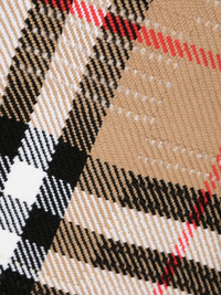 Vintage Check knit scarf archive beige wool-cashmere-silk blend knitted construction Vintage Check pattern frayed edge wraparound style Made in United Kingdom Composition Wool 62%, Cashmere 37%, Silk 1% SIZE & FIT Measurement LENGTH 55.11 in(140 cm) WIDTH 55.11 in(140 cm)