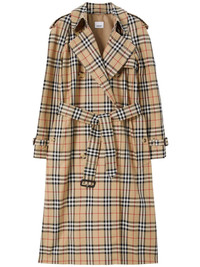 Vintage Check-print trench coat Highlights - Sand beige - Cotton blend - Vintage check pattern - Spread collar - Peak lapels - Front button fastening - Detachable adjustable waist strap - Long sleeves - Rear slit - Straight hem - Mid-length Imported Composition Cotton 95%, Elastane 5% SIZE & FIT Measurement SLEEVE LENGTH 29.52 in(75 cm) LENGTH 44.88 in(114 cm)