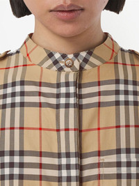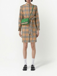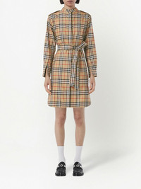 Vintage-check shirt dress Vintage-check shirt dress from BURBERRY featuring cotton, Vintage Check pattern, round neck, concealed front button fastening, long sleeves, belted waist, curved hem and archive beige. Imported Composition Cotton 100%