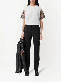 Vintage Check-sleeve T-shirt First introduced in the 1920s and later popularised in the '60s, Burberry's hallmark house check remains as the iconic house code, evolving with the brand. Crafted from cotton, this white T-shirt is elevated by short sleeves printed with the Vintage version of the label's signature check pattern in archive beige. Imported Composition Cotton 100% SIZE & FIT Measurement SLEEVE LENGTH 9.44 in(24 cm) Shoulder Width 17.71 in(45 cm) LENGTH 24.8 in(63 cm) BUST 35.43 in(90 cm) Washing instructions Machine Wash