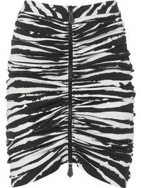 watercolour print ruched skirt Life is short but your skirts don't need to be. Crafted from stretch cotton in a ruched design, this black and white skirt from Burberry is decorated with a watercolour print. Enjoy every day. Featuring a fitted silhouette, a high waist, a two-way zip fastening and a short length. Made in Italy Composition Calf Leather 100%, Mother of Pearl 100%, Cotton 92%, Spandex/Elastane 8% Washing instructions Specialist Cleaning