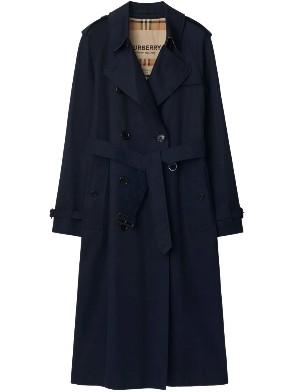 Waterloo Heritage trench coat Highlights - Navy blue - Cotton - Notched lapels - Button-down collar - Double-breasted button fastening - Belted waist - Two front welt pockets - Storm flap - Long sleeves Made in United Kingdom Composition Lining: Cotton 100%, Viscose 100% Outer: Calf Leather 100%, Organic Cotton 70%, Cotton 30% Washing instructions Dry Clean Only