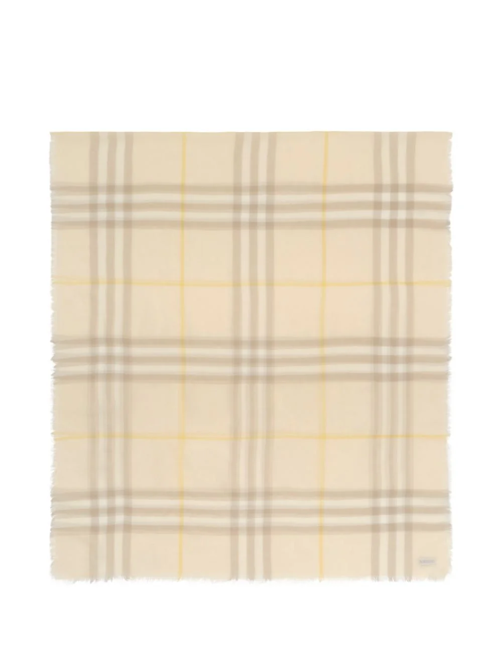 wide Check wool scarf Highlights - A lightweight wool scarf made in italy. the design is woven with the burberry check in summery custard beige. - Rectangular - Eyelash fringing at the edges Made in Italy Composition Wool 100% Washing instructions Read Manufacturer Guidelines