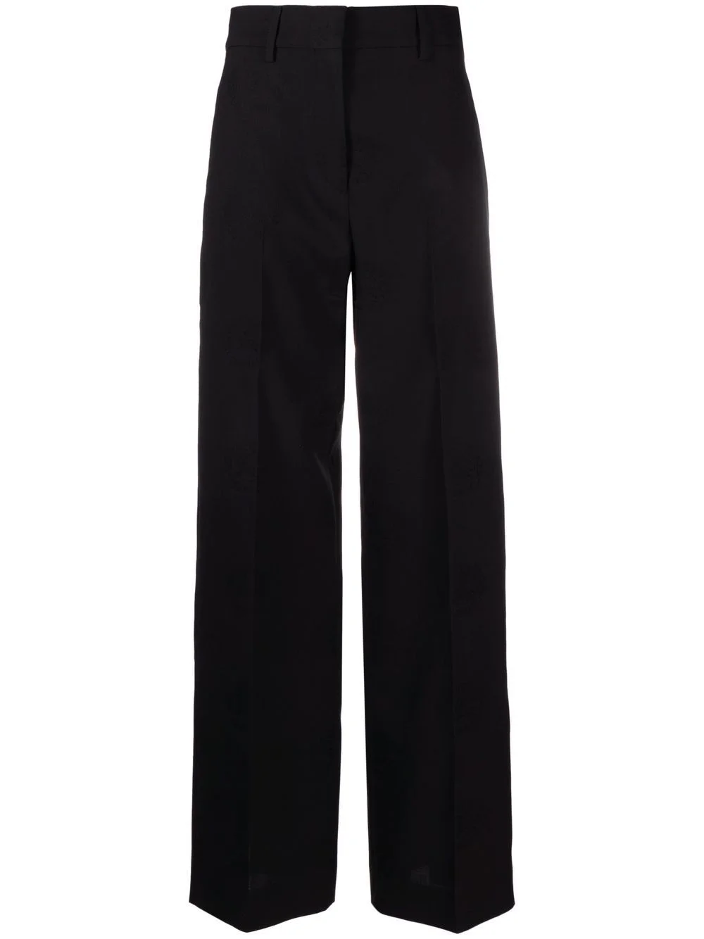 wide-leg tailored trousers Burberry’s timeless aesthetic is demonstrated by these black trousers. Tailored from cotton, they’re cut to a traditional wide-leg silhouette. Made in Italy Composition Cotton 100% SIZE & FIT Model measurements Height 5 ft 12 in(1.82 m) Bust/Chest 34.25 in(87 cm) Hips 37.79 in(96 cm) Waist 25.19 in(64 cm) FittingInformation This piece fits true to size. We recommend you get your regular size Designed to be fitted at the waist and hips, loose over the leg Made with a mid-weight non-stretch fabric