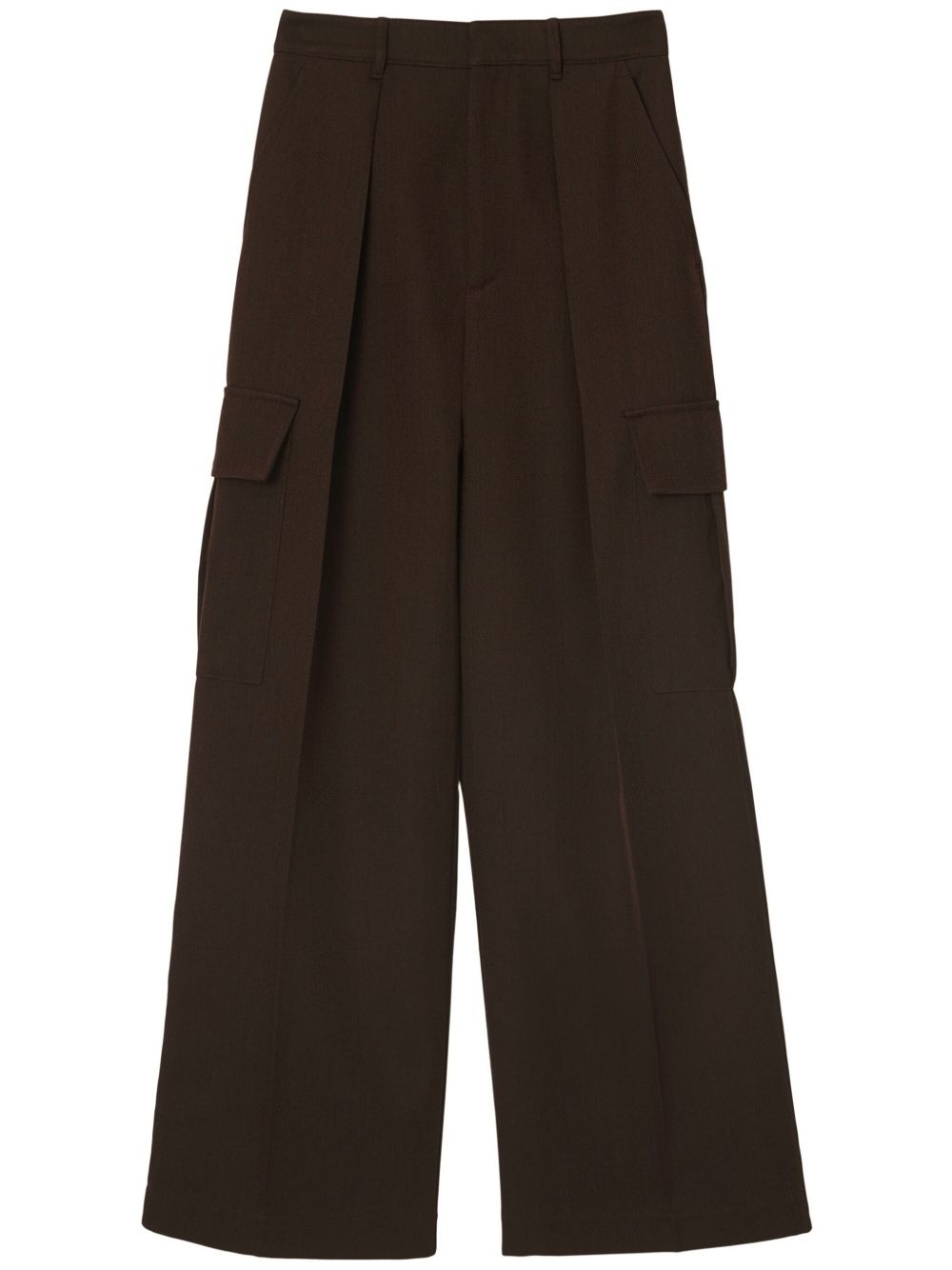 wide-leg wool cargo trousers Highlights - Brown - Wool - Pleat detailing - High-waisted - Belt loops - Concealed front fastening - Two side cargo pockets - Two side inset pockets - Two rear button-fastening jetted pockets - Pressed crease - Wide leg Imported Composition Lining: Cotton 100% Outer: Wool 100%