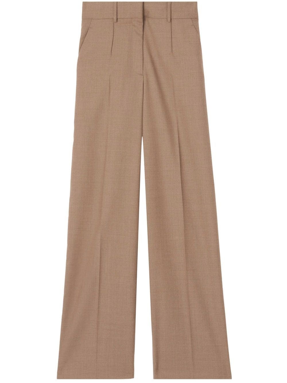 wide-leg wool trousers Burberry offers a modern capsule of elevated essentials in their Future Heritage collection. As a part of the line-up, these wide-leg wool trousers speak to the brand's long history of neutral-toned designs, with the wide-leg silhouette imparting a contemporary twist. Highlights - Brown - Wool - High waist - Belt loops - Hook and zip fly fastening - Slip pockets to the sides - Pressed crease - Wide leg Made in Italy Composition Lining: Cupro 93%, Spandex/Elastane 7% Outer: Wool 100% Washing instructions Dry Clean Only
