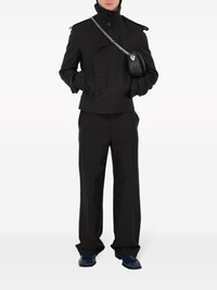 wool-blend tailored trousers Highlights - Black - Wool-silk blend - Logo charm - Mid-rise - Belt loops - Concealed front fastening - Side pouch pockets - Two rear welt pockets - Pressed crease - Straight leg Made in Italy Composition Outer: Wool 60%, Silk 40% Lining: Cupro 100% SIZE & FIT Measurement FRONT RISE 12 in(30.5 cm) INSIDE LEG 35.82 in(91 cm) HIPS 40.94 in(104 cm)