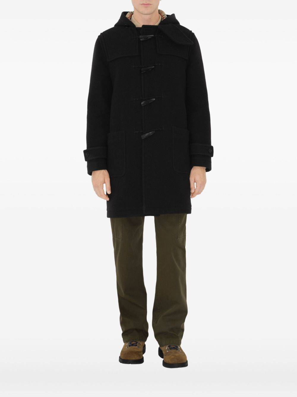 wool duffle coat Highlights - Black - Front toggle fastening - Belted cuffs - Classic hood Imported Composition Wool 100% Washing instructions Dry Clean Only