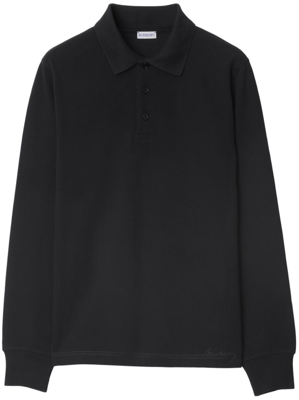 wool polo shirt Highlights - Black - Wool - Embroidered logo - Polo collar - Front button placket - Long sleeves - Straight hem Imported Composition Wool 100%