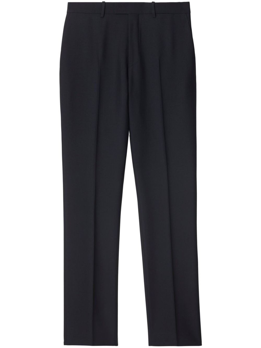 wool tailored trousers Highlights - Navy blue - Concealed front button, hook and zip fastening - Slip pockets to the sides - Rear welt pocket - Pressed crease Made in Italy Composition Lining: Viscose 100% Outer: Wool 100%, Buffalo Horn 100%