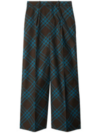 wool tailored trousers Highlights - Brown/blue - Wool - Check pattern - Tailored design - Belt loops - Pleat detailing - Concealed front fastening - High-waisted - Wide leg - Two side inset pockets - Rear welt pocket - Straight hem Made in Italy Composition Outer: Wool 100%, Buffalo Horn 100% Lining: Viscose 100%