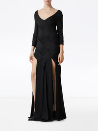 woven panel evening dress Looking to make an impression? Look no further. This woven, slit detail dress will turn all heads, everywhere you go. Featuring a v-neck, three-quarter length sleeves, a woven design, a fitted silhouette, side slits and a long length. Imported Composition Viscose 93%, Polyamide 6%, Spandex/Elastane 1% SIZE & FIT Measurement LENGTH 60.62 in(154 cm)