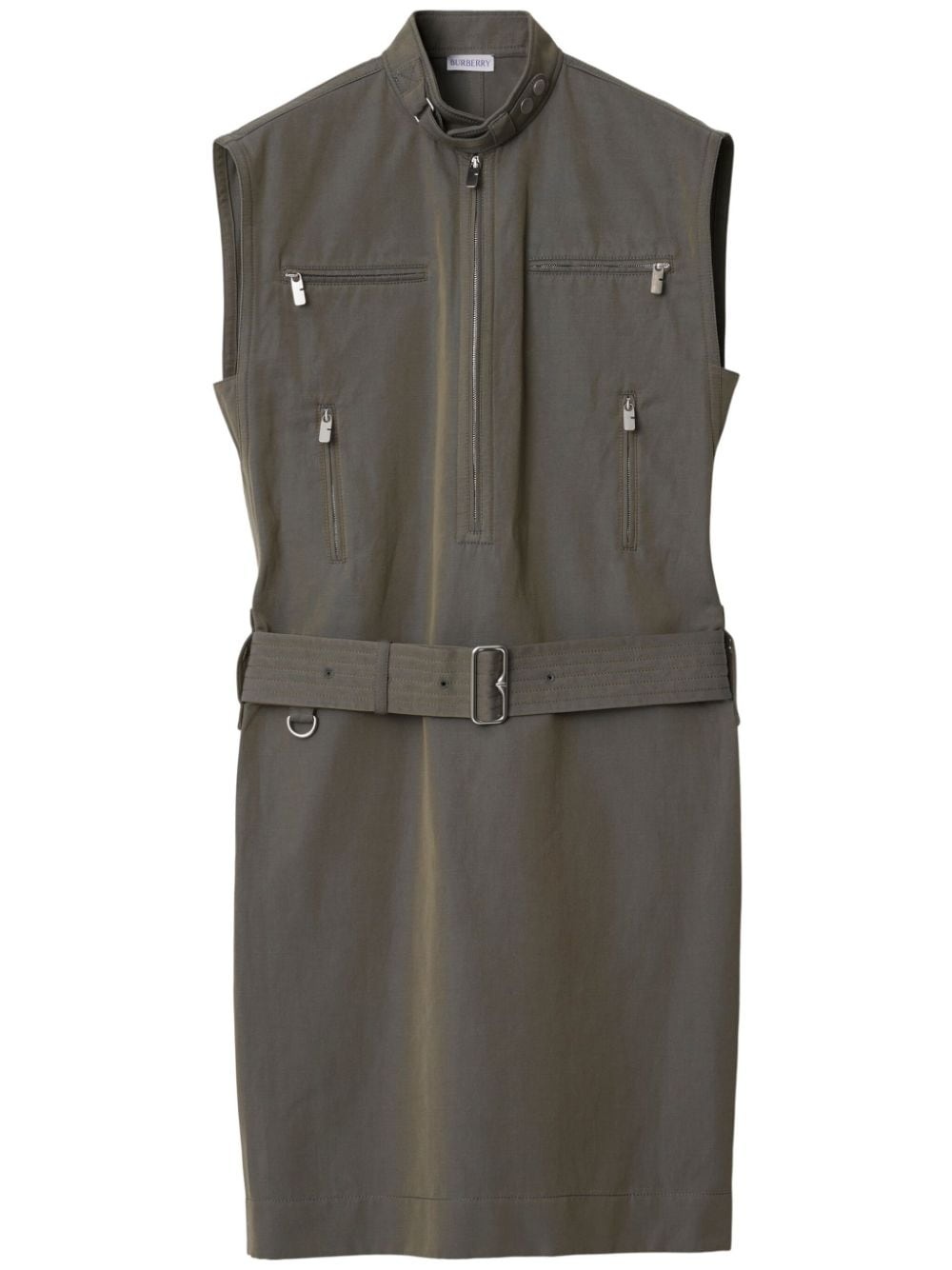 zip-detail cotton-linen dress Highlights - Grey - Cotton-linen blend - Shot weave - Subtle iridescent effect - Press-stud fastening collar - Short front zip fastening - Sleeveless - Multiple zip-fastening pockets - Belted waist - Knee-length - Straight hem Made in Italy Composition Cotton 80%, Linen/Flax 20%