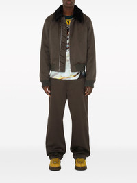 zipped shearling-collar bomber jacket Highlights - Brown - Cotton - Shearling collar - Off-centre front zip fastening - Two press-stud fastening side pockets - Elasticated hem - Long sleeves - Ribbed cuffs and hem Made in Italy Composition Outer: Cotton 100%, Polyester 100%, Lamb Fur 100%, Wool 96%, Polyamide 3%, Elastane 1% Lining: Viscose 100% Washing instructions Specialist Cleaning