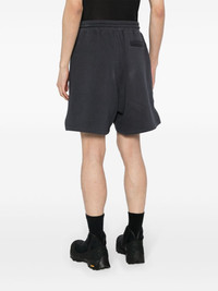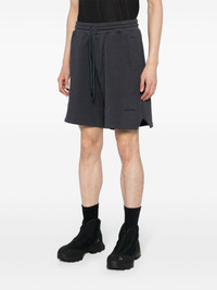 logo-embroidered track shorts Highlights - Anthracite grey - Cotton - Embroidered logo at the leg - Elasticated drawstring waistband - Two side slit pockets - Short side slits - Rear jetted pocket Imported Composition Cotton 100% SIZE & FIT Model measurements Height 6 ft 2 in(1.87 m) Bust/Chest 34.25 in(87 cm) Hips 36.22 in(92 cm) Waist 29.52 in(75 cm) FittingInformation Designed for a straight-leg fit, offering an unrestricted and comfortable fit over the leg Adjust this piece’s waistband to your preference using the drawstring Made from a midweight non-stretch fabric, this piece offers minimal elasticity when worn This piece fits true to size – take your usual size Washing instructions Hand Wash