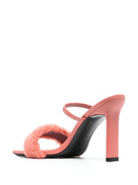110mm Ada sandals Distinguished by its squared-toe silhouette, BY FAR's Ada mules are crafted from salmon pink calf leather. Set on a high heel, the contemporary allure of the style is enhanced by the shearling detail at the upper. Highlights - Salmon pink - Calf leather - Shearling trim - Open toe - Square toe - Branded insole - High heel Imported Composition Outer: Sheep Skin/Shearling 100% Lining: Calf Leather 100% Sole: Calf Leather 100% SIZE & FIT Measurement HEEL 4.33 in(11 cm)