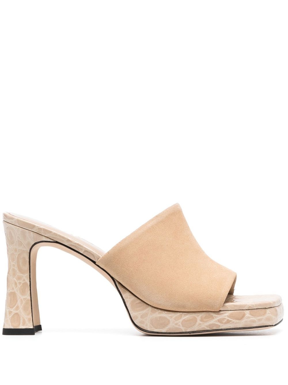 100mm Beliz sandals The Beliz mules by By Far are expertly made from calf leather in Portugal and come in a subtle beige colour with a textured crocodile-embossed finish. The open-toe shape is further enhanced by the sculpted block heel. Highlights - Beige - Calf leather - Embossed crocodile effect - Slip-on style - Open toe - Branded insole - High heel Imported Composition Outer: Calf Leather 100% Lining: Calf Leather 100% Sole: Calf Leather 100% SIZE & FIT Measurement HEEL 3.93 in(10 cm) Sole height 0.78 in(2 cm)