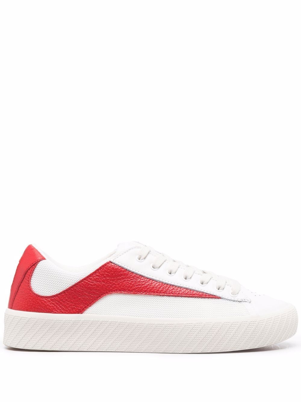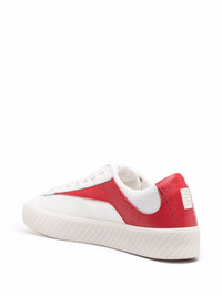 contrasting-panel sneakers Highlights - White/red - Leather - Contrasting panel detail - Round toe - Front lace-up fastening - Branded insole - Flat rubber sole Made in Italy Composition Lining: Fabric 100% Sole: Rubber 100% Outer: Calf Leather 100% SIZE & FIT Measurement HEEL 1.18 in(3 cm) Sole height 0.98 in(2.5 cm)