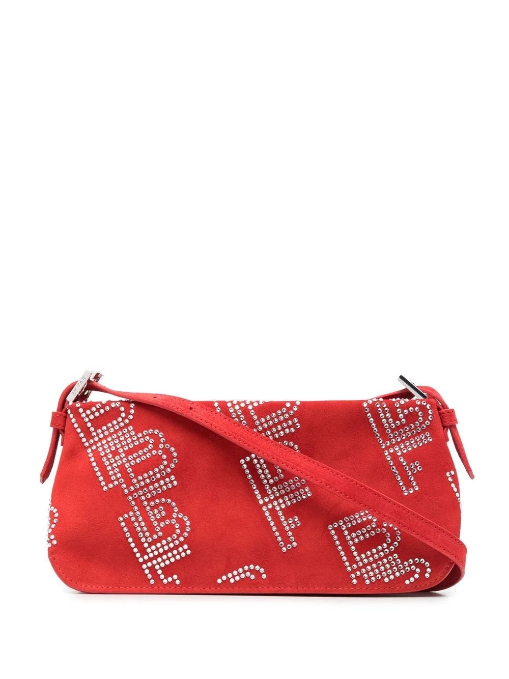Dulce crystal-embellished shoulder bag Dulce crystal-embellished shoulder bag from BY FAR featuring red, calf leather, suede, cotton, logo embellishment, crystal embellishment, adjustable shoulder strap, top zip fastening, cotton lining and internal slip pocket. Imported Composition Outer: Calf Leather 100% Lining: Cotton 100% SIZE & FIT Model measurements Height 5 ft 9 in(1.75 m) Bust/Chest 32.67 in(83 cm) Hips 36.22 in(92 cm) Waist 24.8 in(63 cm) Measurement DEPTH 1.96 in(5 cm) HANDLE 10.62 in(27 cm) HEIGHT 3.93 in(10 cm)