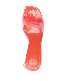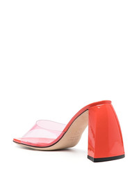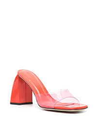 100mm Michele sandals By Far's aesthetic revolves around transforming and reinventing classic silhouettes, as seen here with the Michele mules. The design is simple and minimalist with fluid lines, owing to the shoe's sculpted heel and rounded square toe. Fit with a transparent strap across the toe, the combination of the shoe's high-shine, glossy patent leather and flame red hue makes them a standout. Highlights - Flame red - Calf leather - Patent finish - Open toe - Transparent strap - Slip-on style - 100mm sculpted heel - Branded leather insole - Leather outsole Imported Composition PVC 100% SIZE & FIT Measurement HEEL 3.93 in(10 cm)