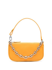 mini Rachel lizard-skin effect shoulder bag orange leather/cotton lizard-skin effect silver-tone hardware detachable shoulder strap chain-link shoulder strap top zip fastening main compartment cotton lining Imported Composition Lining: Cotton 100% Outer: Calf Leather 100% SIZE & FIT Model measurements Height 5 ft 10 in(1.79 m) Bust/Chest 33.07 in(84 cm) Hips 35.82 in(91 cm) Waist 24.01 in(61 cm) Measurement DEPTH 1.18 in(3 cm) HANDLE 5.9 in(15 cm) HEIGHT 3.93 in(10 cm) WIDTH 6.69 in(17 cm)