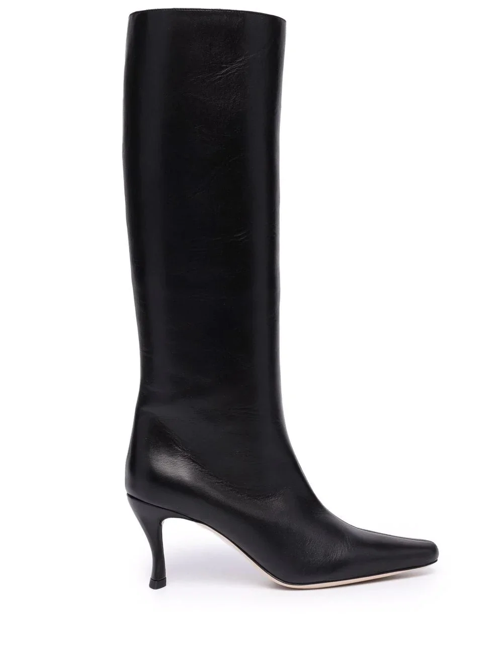 pointed knee-length boots black calf leather knee-length pointed toe low heel Imported Composition Outer: Calf Leather 100% Lining: Leather 100% Sole: Leather 100% SIZE & FIT FittingInformation This piece fits true to size. We recommend you get your regular size Measurement CIRCUMFERENCE 11.81 in(30 cm) HEEL 3.14 in(8 cm) HEIGHT 15.35 in(39 cm)