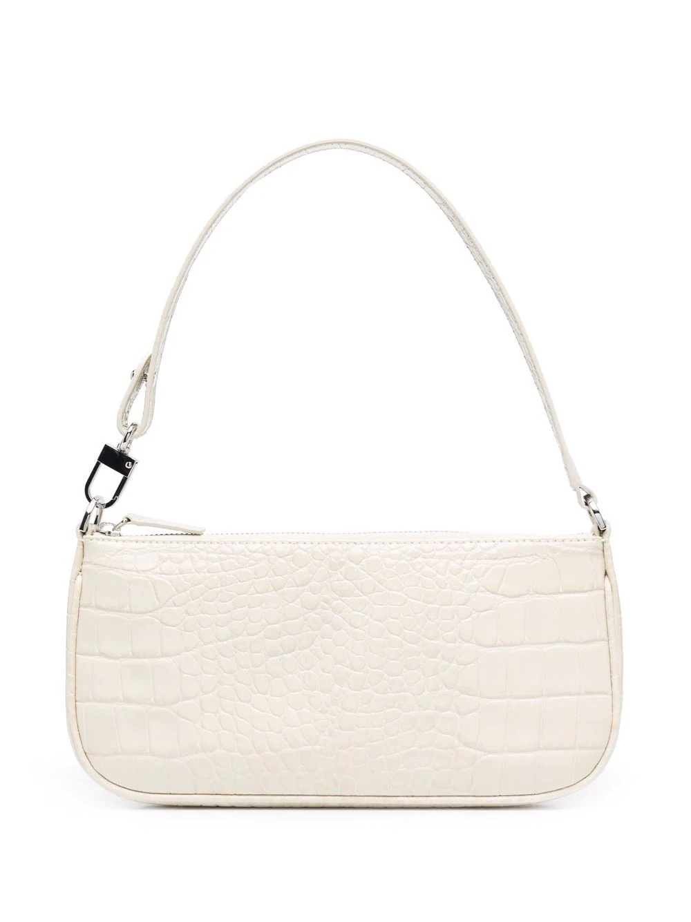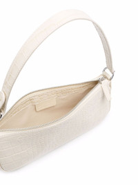 Rachel crocodille-effect shoulder bag Named after the 1990s hit-show Friends' character, By Far's Rachel silhouette evokes the simplicity of that decade's accessories with its rectangle shape main compartment and cream tonal design. Crafted from soft calf leather, this shoulder bag is finished with an embossed crocodile effect for added texture. Imported Composition Outer: Calf Leather 100% Lining: Cotton 100% SIZE & FIT Model measurements Height 5 ft 9 in(1.76 m) Bust/Chest 31.88 in(81 cm) Hips 35.43 in(90 cm) Waist 24.01 in(61 cm) Measurement DEPTH 1.57 in(4 cm) HANDLE 7.08 in(18 cm) HEIGHT 4.72 in(12 cm) WIDTH 9.84 in(25 cm)