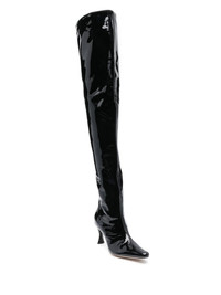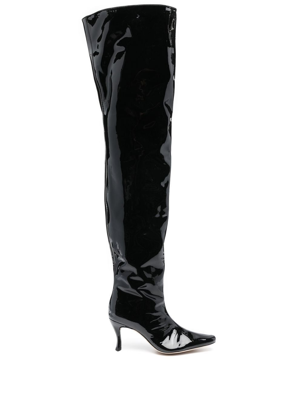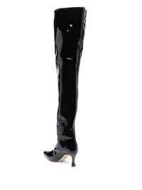 75mm Stevie 99 leather boots Crafted from patent leather, BY FAR's Stevie 99 boots benefit from an elongated silhouette that extends over-the-knee. In addition, this pull-on design boasts an angular heel, creating an eye-catching construction. Highlights - Black - Calf leather - Patent finish - Pull-on style - Almond toe - High heel Imported Composition Sole: Calf Leather 100% Outer: Patent Calf Leather 100% Lining: Calf Leather 100% SIZE & FIT Measurement CIRCUMFERENCE 19.68 in(50 cm) HEEL 2.95 in(7.5 cm) HEIGHT 26.37 in(67 cm)