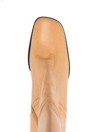 Tia leather knee-high boots Taking inspiration from the Western aesthetic, BY FAR creates the Tia boots, catching the eye with a striking knee-length. Imagined in a biscuit hue, the sculptural block heel and exaggerated square toe puts a modern spin on a timeless silhouette. Imported Composition Outer: Lambskin 100% Lining: Leather 100% Sole: Leather 100% SIZE & FIT Measurement CIRCUMFERENCE 15.74 in(40 cm) HEEL 4.33 in(11 cm) HEIGHT 14.96 in(38 cm)