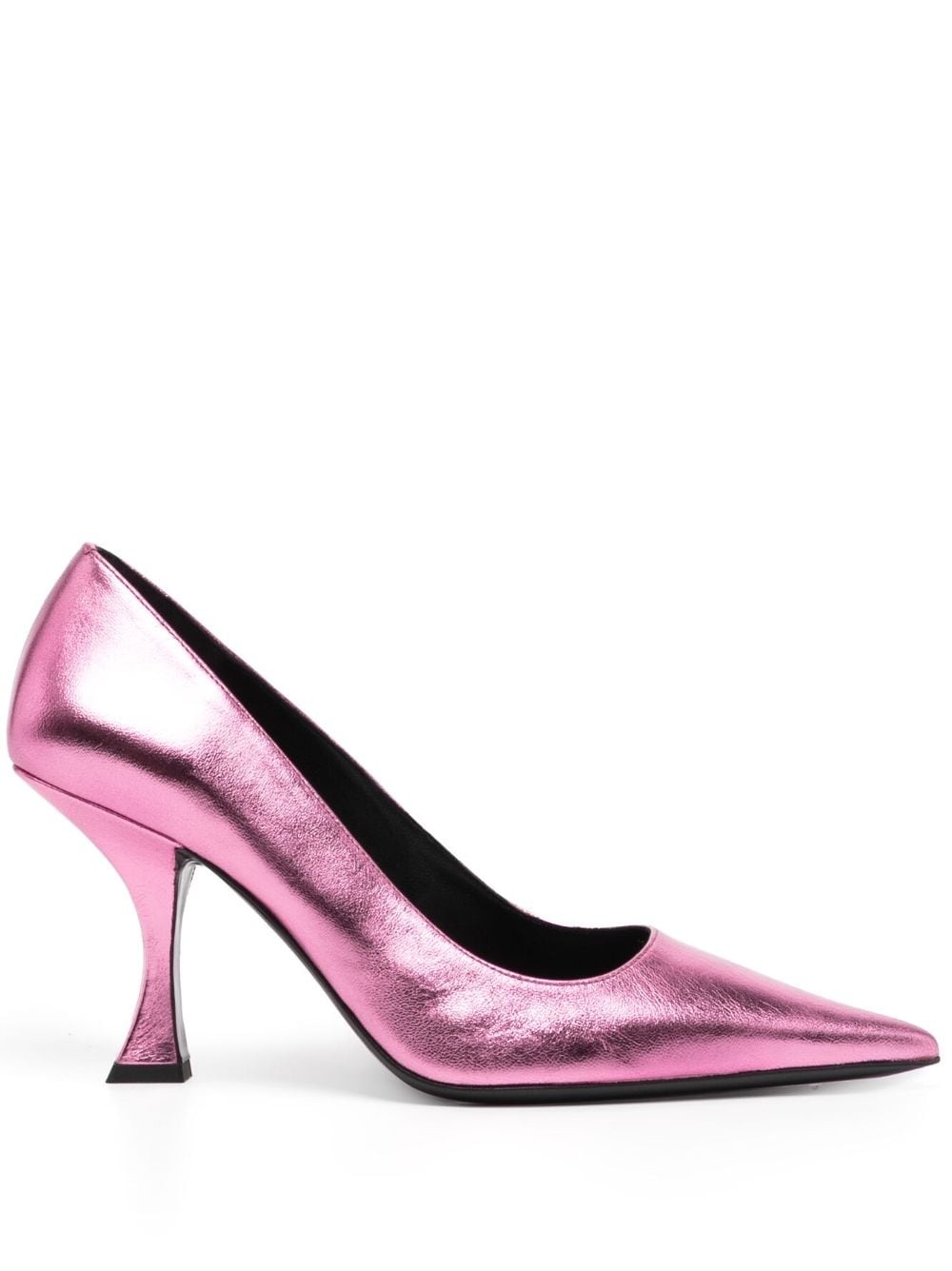 Viva 90mm pumps BY FAR continues to create simple yet impactful footwear, as seen in these Viva pumps. Made from rose-pink metallic leather, the pair comes with a pointed toe extending the slim silhouette, while 90mm sculpted heels accent the design. Highlights - Rose pink - Leather - Metallic effect - Pointed toe - Branded leather insole - High sculpted heel - Slip-on style Imported Composition Lining: Leather 100% Outer: Metallic Leather 100% SIZE & FIT Measurement HEEL 3.54 in(9 cm)