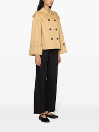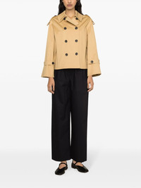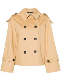 Alisandra double-breasted trench jacket Highlights - Beige - Organic cotton blend - Gabardine weave - Pleat detailing - Oversized pointed collar - Double-breasted button fastening - Long sleeves - Epaulettes - Buttoned cuffs - Two side slit pockets - Straight hem - Full lining Imported Composition Outer: Organic Cotton 50%, Cotton 48%, Elastane 2% Lining: Viscose 100% SIZE & FIT Model measurements Height 5 ft 10 in(1.78 m) Bust/Chest 31.49 in(80 cm) Hips 35.03 in(89 cm) Waist 23.62 in(60 cm) FittingInformation Designed to be unstructured, offering a loose fit throughout Made from a midweight fabric This piece fits true to size – take your usual size Washing instructions Dry Clean Only