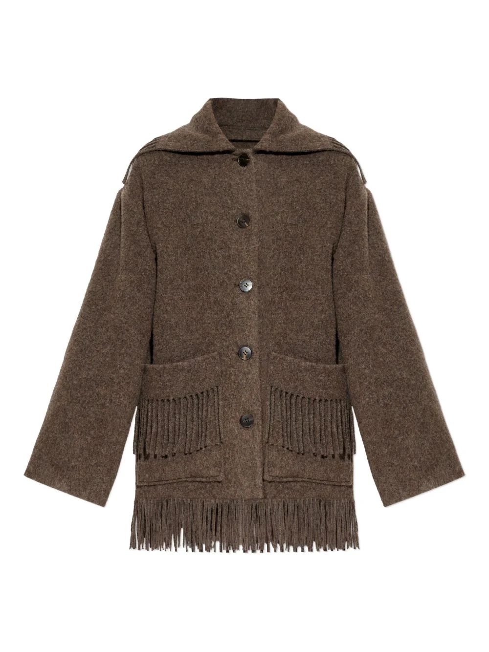 Boloune jacket Highlights - Brown - Fringe detail - Button fastening - Front pockets - Long sleeves Imported Composition Wool 75%, Polyamide 20%, Other Materials 5% Washing instructions Read Manufacturer Guidelines