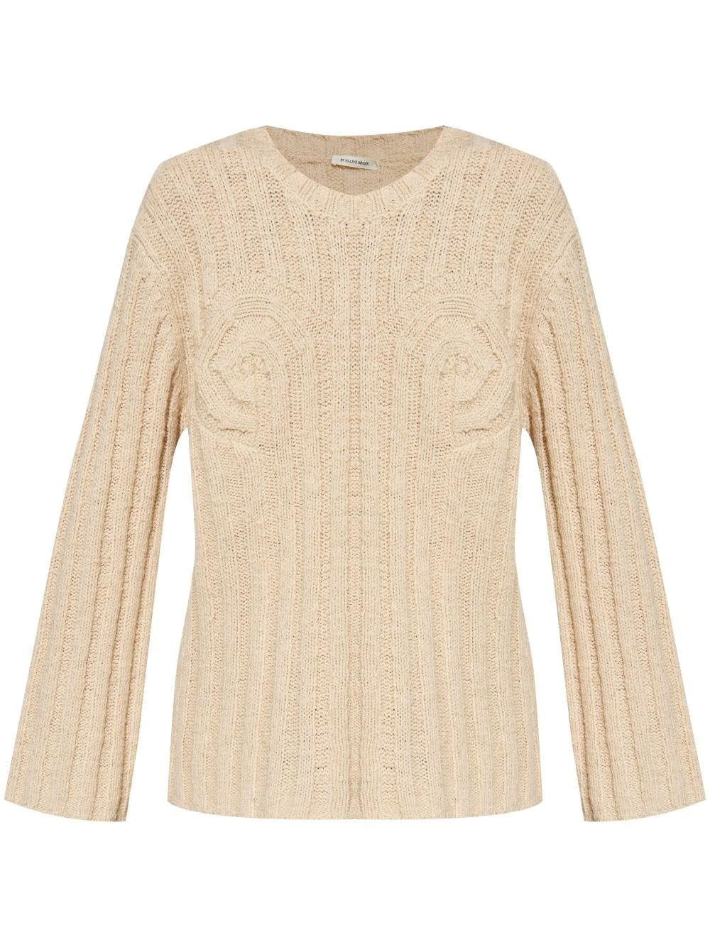 Cirra ribbed knit sweater Highlights - Beige - Wool blend - Chunky ribbed knit - Swirl pattern detailing on chest - Round neck - Long sleeves - Straight hem Imported Composition Wool 96%, Elastane 4%