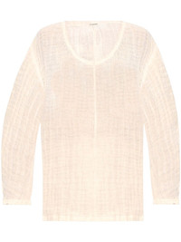 crew-neck linen top Highlights - Cream white - Organic linen - Crew neck - Drop shoulder - Three-quarter length sleeves - Straight hem Imported Composition Organic Linen 100% Washing instructions Machine Wash
