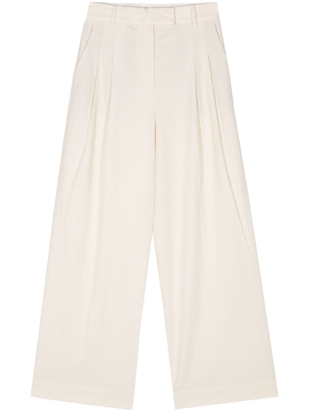 Cymbaria palazzo pants Highlights - White - Organic cotton blend - Seersucker texture - Pleat detailing - Palazzo design - High-waisted - Belt loops - Front button and zip fastening - Two side inset pockets - Wide leg Imported Composition Organic Cotton 98%, Elastane 2% Washing instructions Machine Wash