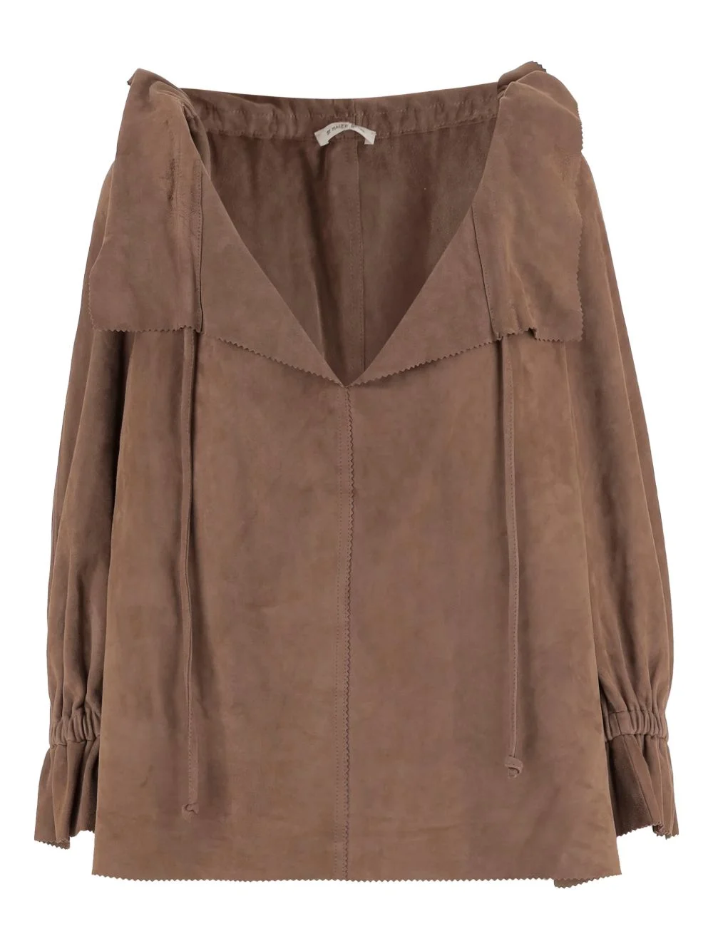 Dicte ruffled drawstring blouse Highlights - Brown - Suede - Ruffled neck - Front drawstring closure - Long sleeves - Ruffled cuffs Imported Composition Goat Skin 100% Washing instructions Specialist Cleaning