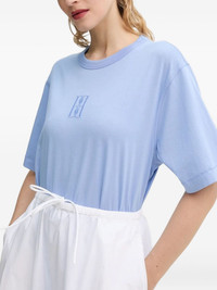 embroidered short-sleeved T-shirt Highlights - Light blue - Short sleeves - Crew neck - Embroidered logo - Straight hemline Imported Composition Organic Cotton 100% Washing instructions Read Manufacturer Guidelines