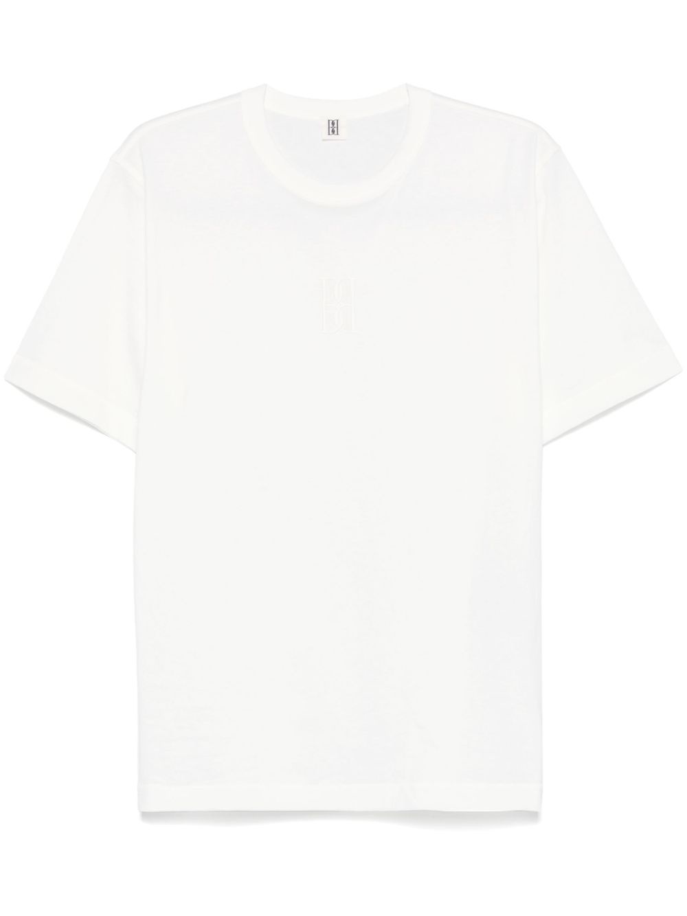 Fayeh T-shirt Highlights - White - Embroidered logo at the chest - Crew neck - Drop shoulder Imported Composition Organic Cotton 100% SIZE & FIT Model measurements Height 5 ft 9 in(1.76 m) Bust/Chest 31.1 in(79 cm) Hips 36.61 in(93 cm) Waist 24.8 in(63 cm) FittingInformation Designed to be unstructured, offering a loose fit throughout Made from a midweight non-stretch fabric, this piece offers minimal elasticity when worn