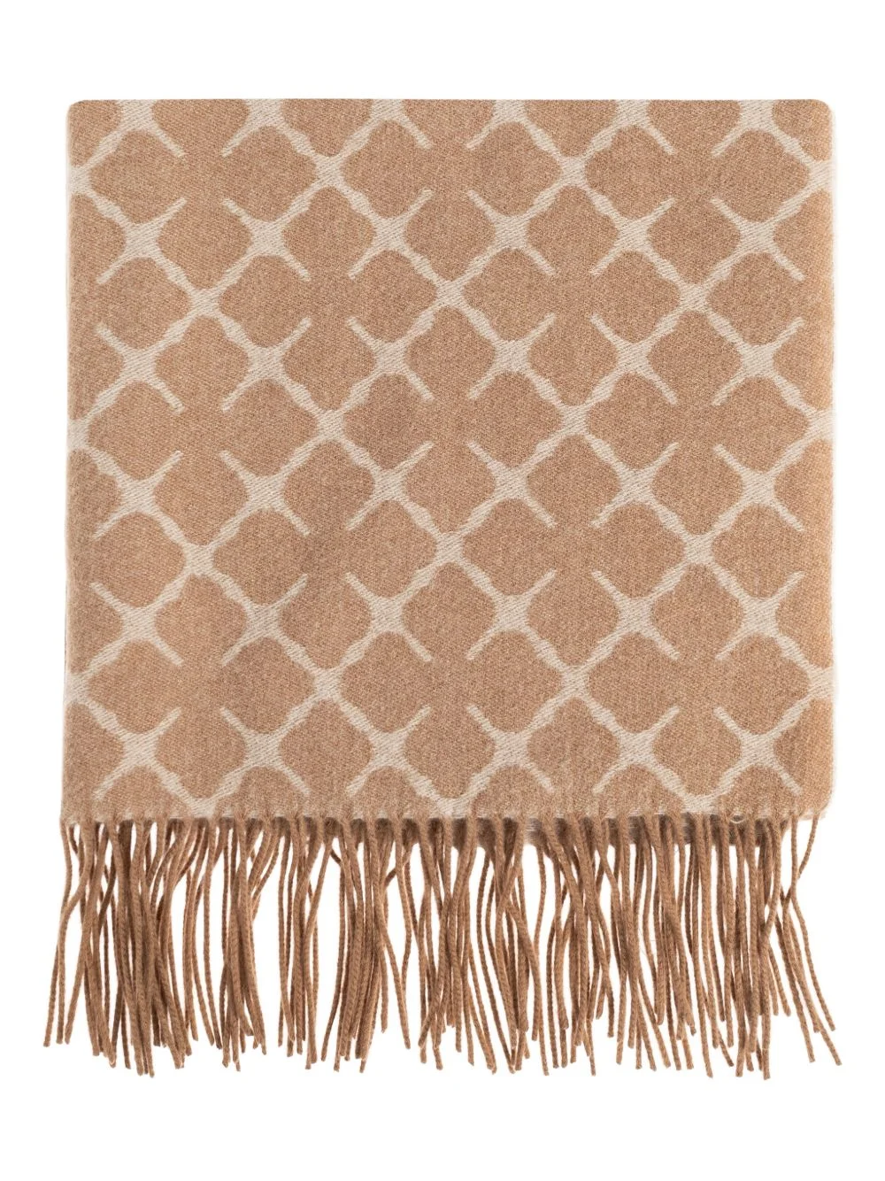 geometric-pattern fringed scarf Highlights - Light brown - Geometric pattern - Fringed trim Imported Composition Wool 100% Washing instructions Read Manufacturer Guidelines