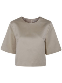 Hania top Highlights - Light beige - Concealed rear zip fastening - Round neck - Short sleeves - Cropped Imported Composition Recycled Polyester 59%, Cotton 41% Washing instructions Machine Wash