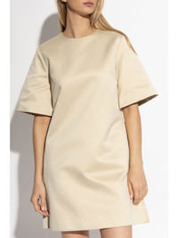 Harperz mini dress Highlights - Light beige - Concealed rear zip fastening - Two side slit pockets - Crew neck - Short sleeves Imported Composition Recycled Polyester 59%, Cotton 41% SIZE & FIT FittingInformation Designed for a relaxed fit, this piece allows for comfort and movement when worn The dart stitching adds structure and a closer fit in the torso of this piece Made from a midweight non-stretch fabric Washing instructions Read Manufacturer Guidelines