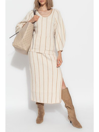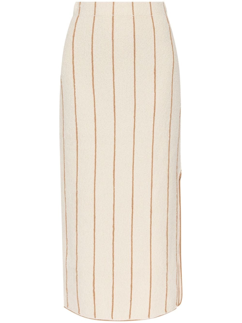 Hercula striped midi skirt Highlights - Cream white/beige - Organic cotton blend - Ribbed knit - Elasticated waistband - Column silhouette - Side slit - Straight hem Imported Composition Organic Cotton 40%, Wool 35%, Recycled Polyamide 24%, Elastane 1%