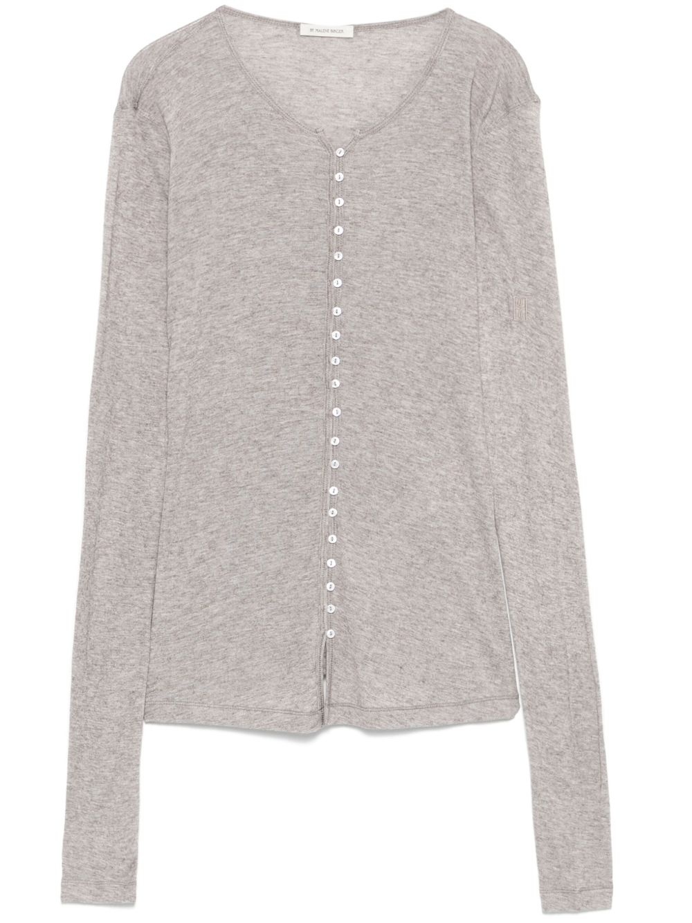 Janes top Highlights - Heather grey - Front button fastening - Ribbed cuffs and hem - Embroidered logo at the sleeve - Crew neck Imported Composition Modal 80%, Wool 20% SIZE & FIT Model measurements Height 5 ft 9 in(1.76 m) Bust/Chest 31.1 in(79 cm) Hips 36.61 in(93 cm) Waist 24.8 in(63 cm) FittingInformation Designed for a slim fit that sits just away from the body offering a close yet comfortable fit Made from a lightweight non-stretch fabric, this piece offers minimal elasticity when worn